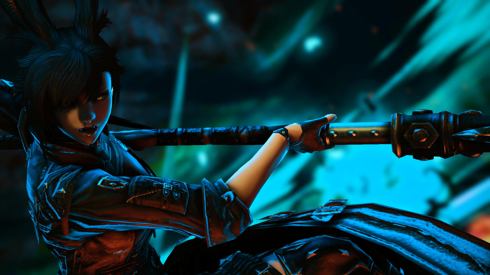 Disappointed she returned home to Eorzea and overtime, she would hear faint whispering that eventually grew louder and louder. She carried the stone with her everywhere she went, hoping she would figure out it's secrets. The Voidsent finally got through some time later, not exactly speaking to Freydis with any coherency that she could tell, but she.. knew what to do. As if being possessed. She did what she knew best.. Hunting.. Capturing.. Though they were no ordinary hunts, no. She tracks people down, if her services were requested.. Either for assassination, slave trade, information, or just.. for fun. Upon finding her query, a small street rat that no one would miss. She took them to a secluded place where she caged, tortured, and broke them down until they were sufficiently obedient. The time came to sacrifice this poor Raen, drawing unfamiliar runes around them on the floor with their blood as they would lie there, barely conscious. All Freydis had to do now was take their life—and that's exactly what she did. The moment she slid a blade through their ribcage and into their heart, she could feel it.. She was changing. Agonizingly slow.. the pain was unimaginable, her eyes filling with blood as new fangs sprouted in place of her old; claws growing that were just as sharp as the finest daggers.. Her heartbeat slowing, until eventually.. stopping. Sealing her contract with the Voidsent that communicated through the stone. She was dead; and so was her victim. Though, this cunning Viera didn't want to lose her new prize just yet, and in turn had a collar procured beforehand by a 'friend'—staving off permanent death so long the collar remained around their neck. By doing so, she played a trick on the voidsent, but the deal was already made. However, the Raen in question seemed different even still.. Perhaps a piece of them was missing.. The Raen came-to before Freydis, screaming and confused, scared, shaking.. cold.. she didn't attempt to leave, not that she could.. After a significant amount of time passed, Freydis finally woke up in turn with a new thirst for Aether and blood.. Finally getting what she wanted. The Reaper jobstone's power.. It was intoxicating.. overwhelming, even.. Perfect, for a hunter.